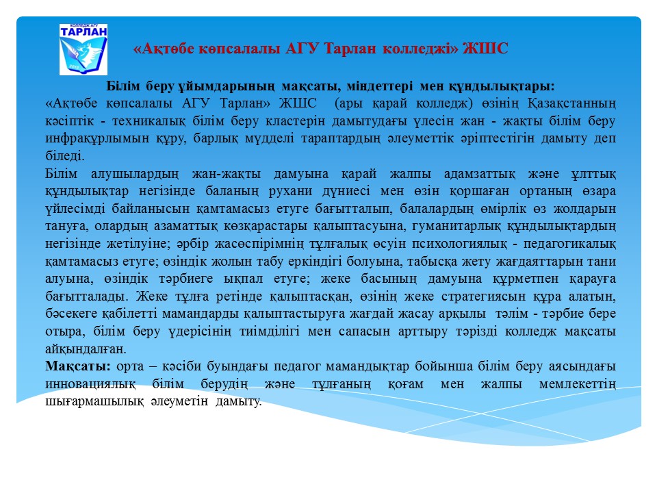 "Актюбинский многопрофильный колледж АГУ Тарлан" ЖШС